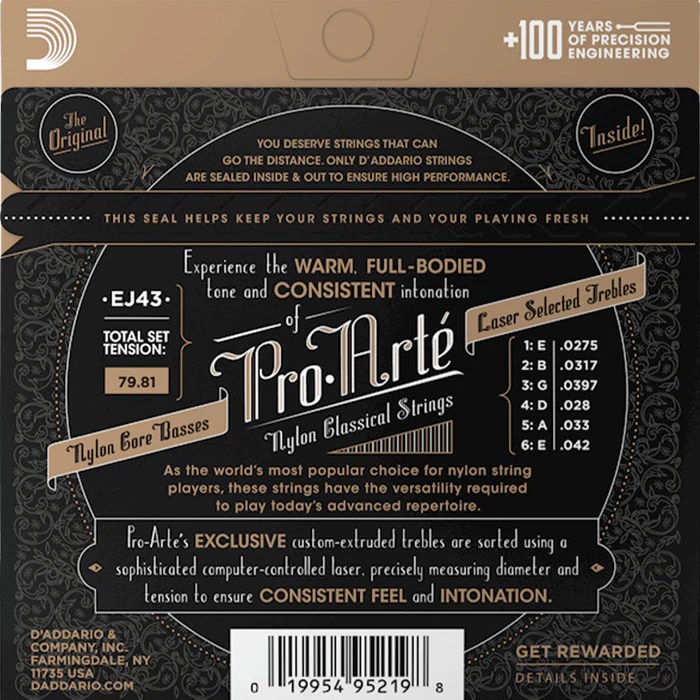 - EARN REWARD POINTS – D’Addario Pro-Arte’ Nylon classical guitar strings come with a code on the recyclable, resealable VCI bag, which you can register to earn Players Circle points.